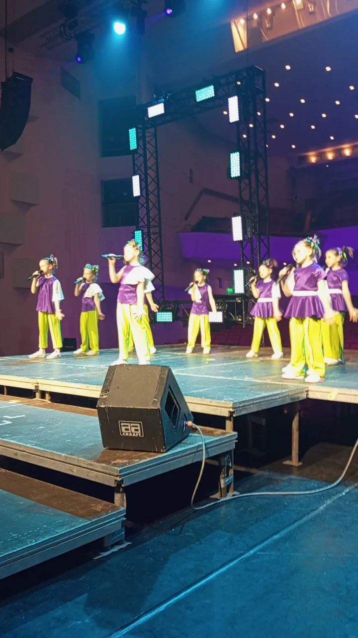Малыши разбегались в разные стороны, как жучки, кто-то смотрел в зал, кто-то в пол, кто-то вообще решил пойти гулять по сцене. Весело было всем! А потом вышли наши — группа Вероники ,,Горошки«, самые старшие. И тут уже полный порядок: движения отточенные, улыбки на месте, даже синхрон почти получился